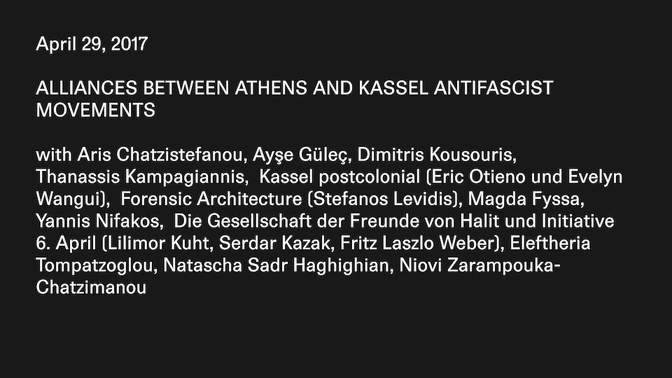 “The Parliament of Bodies, the Public Programs of documenta 14, emerged from the experience of the so-called long summer of migration in Europe, which revealed the simultaneous failure not only of modern representative democratic institutions but also of ethical practices of hospitality. The Parliament was in ruins. The real Parliament was on the streets, constituted by unrepresented and undocumented bodies resisting austerity measures and xenophobic policies…" (Continue reading on documenta website-accesible via Url below)
