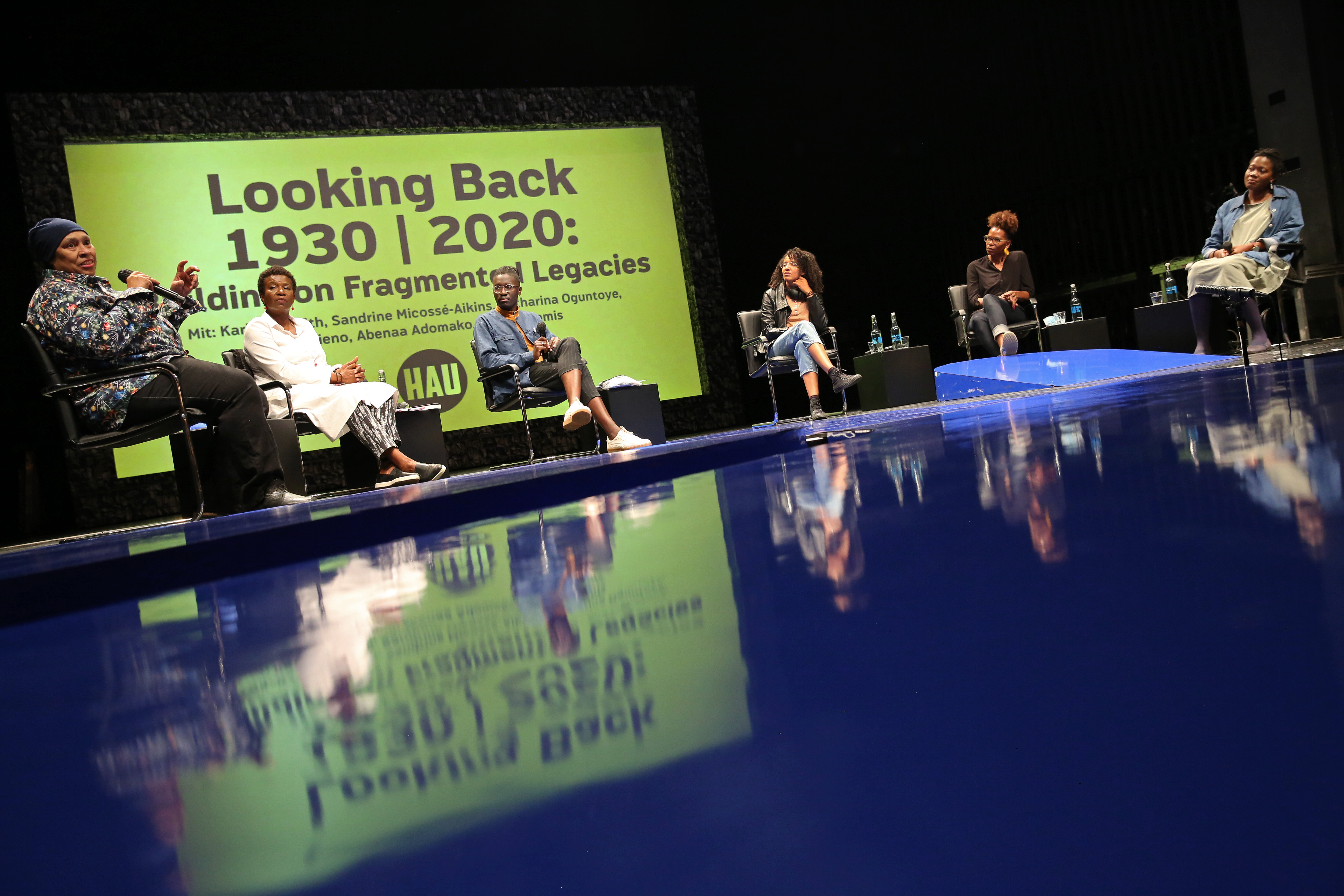 Gespräch mit: Karina Griffith, Sandrine Micossé-Aikins, Katharina Oguntoye, Abenaa Adomako und Saraya Gomis. Moderiert von Eric Otieno.
